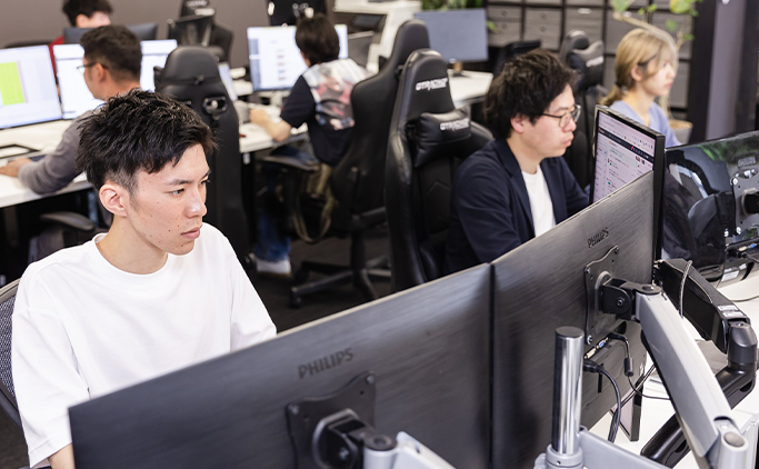 オフィス内にはBGMが流れておりリラックスして業務を行います。